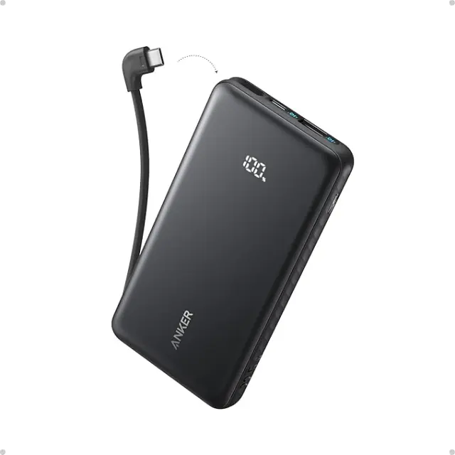 Anker Zolo Power Bank (10K, 22,5 W, z vgrajenim USB-C kablom), vodič za uporabo, 12-mesečna garancija in namenska podpora uporabnikom.