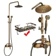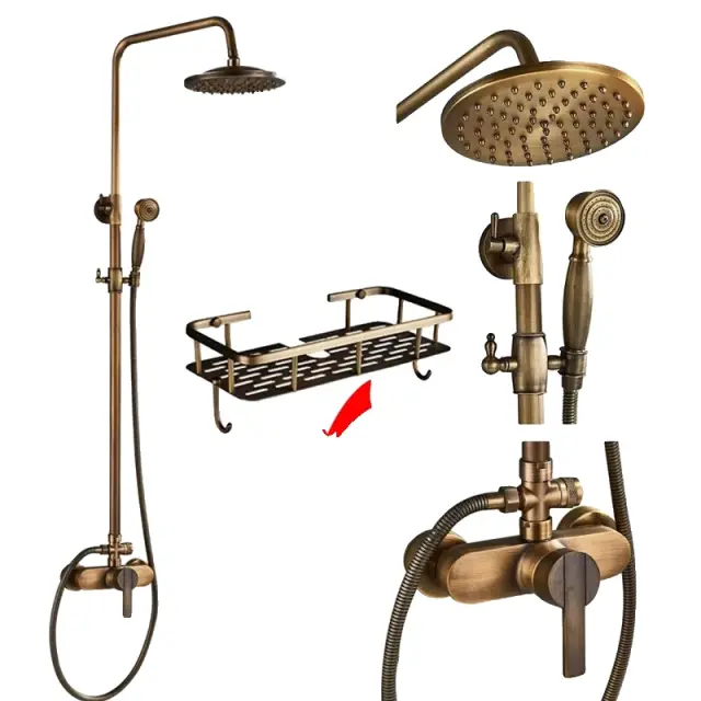 Antični medeninasti tuš pipa set, vroče in hladne pipe, eleganten brušen zaključek, Tape E z policami