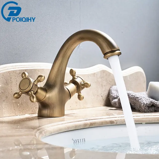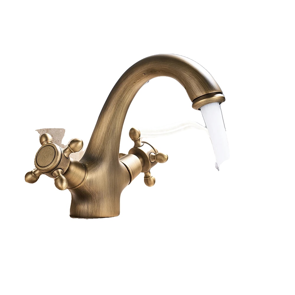 Antik kopalniški pipa, dvojna ročica, trajna keramična ventil, antik medenina