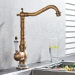 Antik medeninast kuhinjski pipa, 360-stopinjska rotacija, enojni ročaj za vročo in hladno mešanico, High A