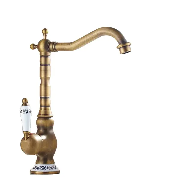 Antik medeninast kuhinjski pipa, enojna ročica, 360° rotacija, visok