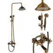Antik medeninast tuš pipa set, dvojna ročica, ročna in deževna možnost, antik medenina C01