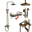 Antik medeninasti tuš pipa set, ročni in dežni tuš glava, dvojna ročna kontrola, antik medeninasti B02