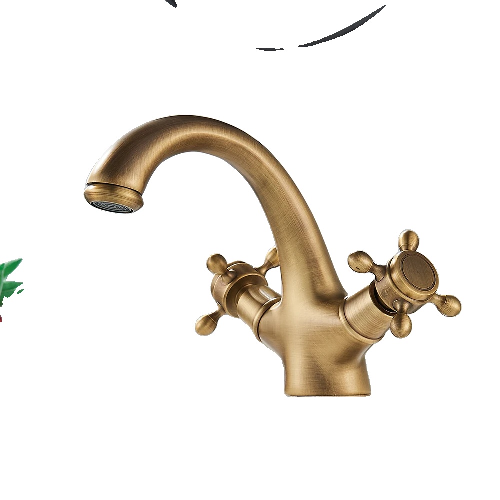 Antikno medeninasto umivalni pipa, dvojna ročica, keramična tehnologija ventila, antikna medenina A