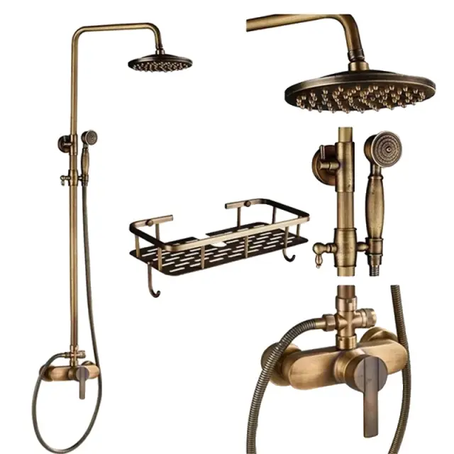 Antikno mesing tuš pipa set, en ročaj, dvojne možnosti tuša, TIE1 polica