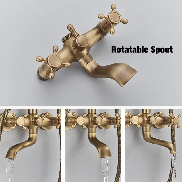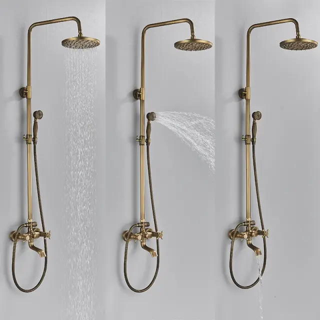 Antikno mesingasto tuširanje pipa set, nastavljiva višina 70-120cm, dvojni nadzor, antikno mesing C