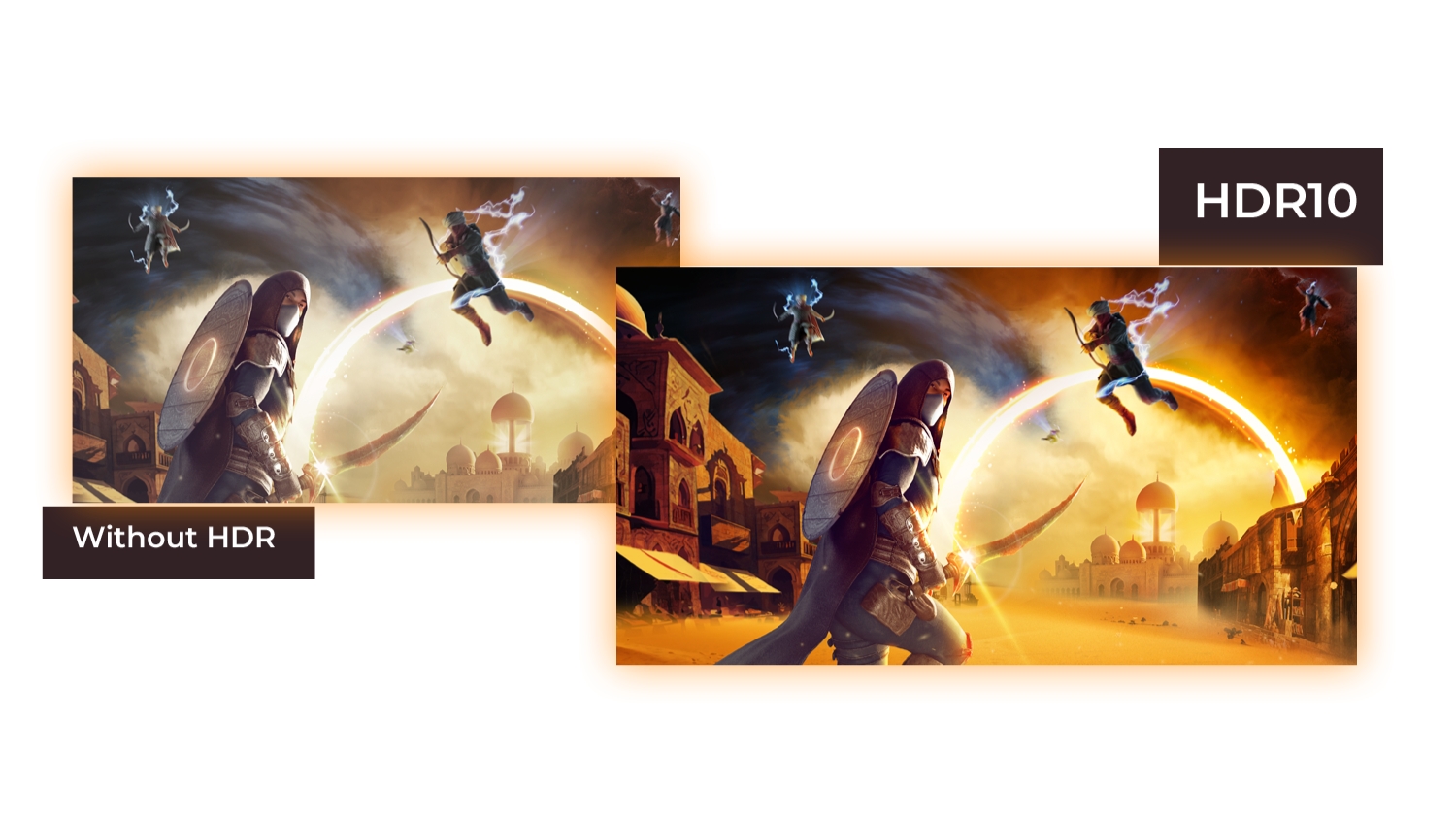 HDR10 je tu, da še dodatno izboljša kakovost slike in sinhronizacijo grafične kartice ali konzole z monitorjem. To ustvarja bolj realistično, privlačno in gladko igralno izkušnjo: počutili se boste, kot da stopate v igro, slika za sliko.
