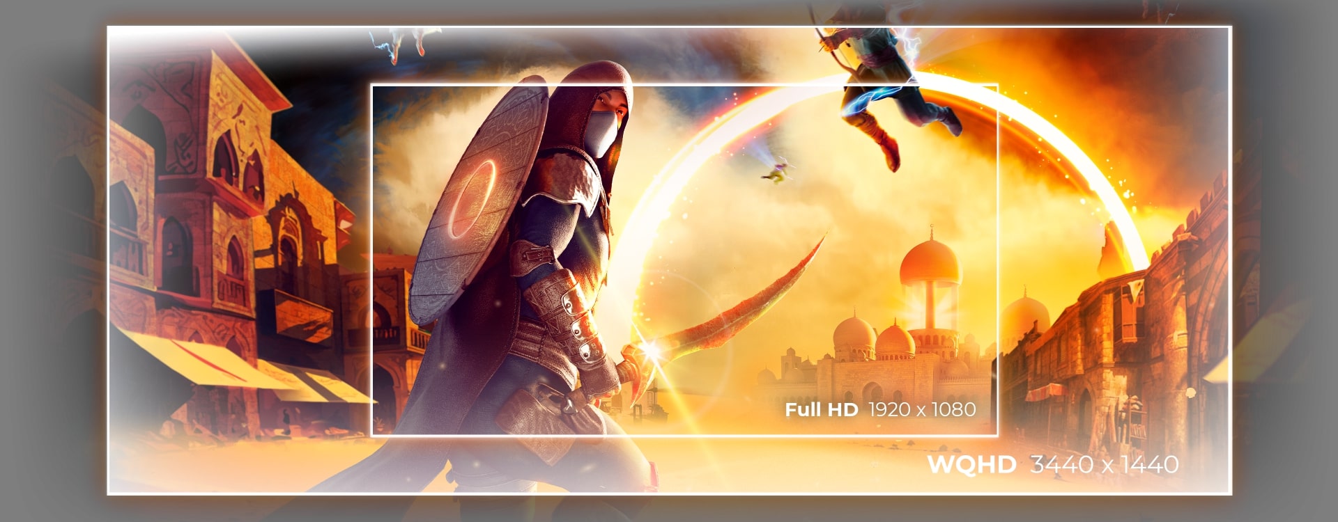 Z ločljivostjo 3440 x 1440 Wide Quad HD (WQHD) ponuja vrhunsko kakovost slike in jasne podobe, ki razkrivajo vsako podrobnost. Širokozaslonsko razmerje stranic 21:9 je idealno za gledanje filmov v razširjenem formatu ali potopitev v najnovejše igre, poleg tega pa ponuja več prostora za delo. Prava 8-bitna barva zagotavlja široko barvno paleto za živahno, naravno izgledajočo sliko.