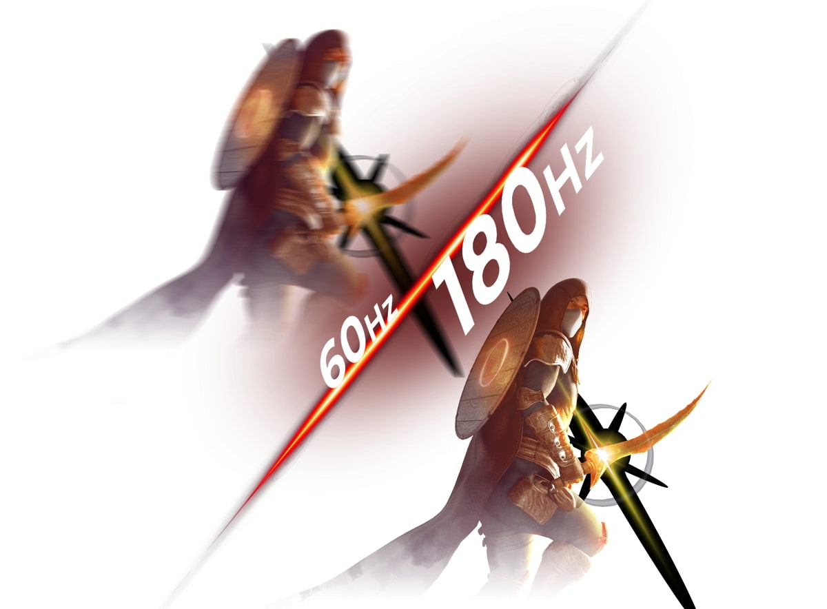 Konkurenčno in intenzivno igranje iger zahteva najboljšo tehnologijo, ki zagotavlja nemoteno in gladko igranje brez zamikov. Ta monitor AGON od AOC ima obnovitveno frekvenco 180 Hz, kar ga naredi trikrat hitrejšega od standardnega zaslona. Nižja hitrost slikanja lahko povzroči, da se sovražniki na zaslonu premikajo iz točke v točko, zaradi česar jih je zelo težko zadeti. Slikovna frekvenca 180 Hz ponovno prikaže tiste kritične manjkajoče slike na zaslonu, tako da so premiki sovražnikov vidni v izjemno gladkem gibanju, kar vam omogoča lažje ciljanje. S tem igralnim monitorjem se ne boste več srečali z zamikom pri vnosu in trganjem zaslona.