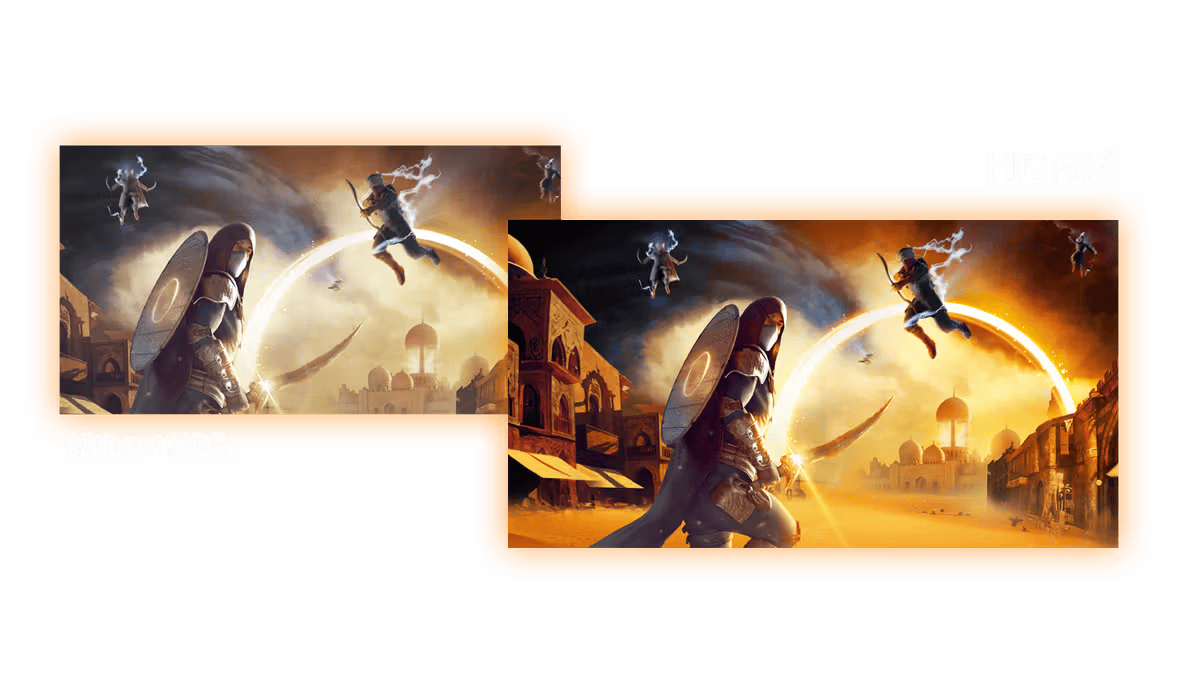 HDR10 je tu, da še dodatno izboljša kakovost slike in uskladi delovanje grafične kartice ali konzole z zaslonom. To ustvarja bolj realistično, privlačno in tekoče igralno doživetje: imeli boste občutek, da stopate v igro, slika za sliko.