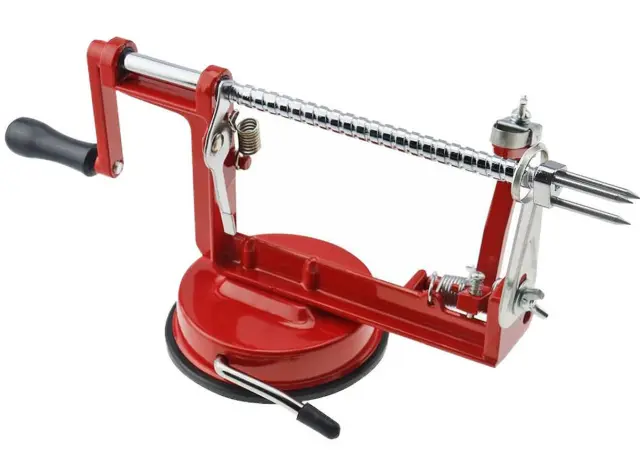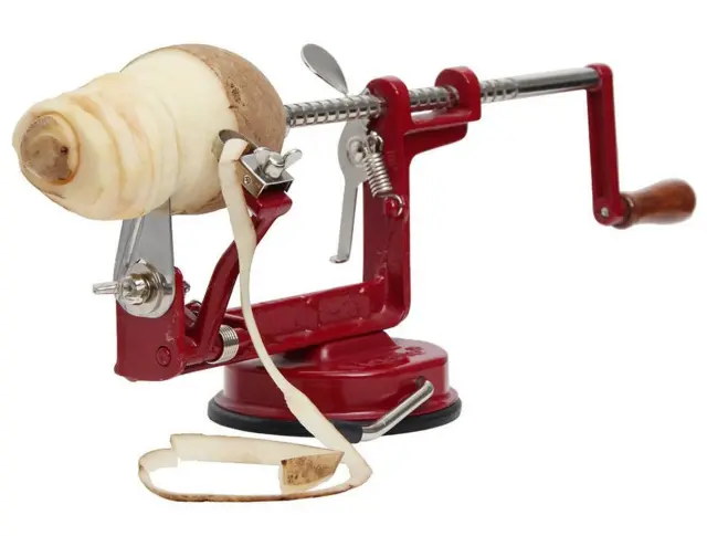 Olajšajte si pripravo in kuhanje zdravih obrokov s pomočjo ročnega vrtečega lupilca za sadje in zelenjavo! Ta inovativni aparat vam omogoča hitro in enostavno lupljenje različnih vrst sadja in zelenjave, brez da bi morali uporabljati nože ali druge nevarne pripomočke. S svojo trpežno in kakovostno konstrukcijo je ta lupilec idealen tako za domačo kot profesionalno uporabo. Kupite ga sedaj in uživajte v zdravih obrokih brez nepotrebnega truda!”Lupilec jabolk je idealna in zelo uporabna naprava v vsaki kuhinji. Zahvaljujoč njej boste hitro in brez težav pripravili okusne in izvirne jedi.S tem praktičnim orodjem lahko hitro odstranite lupino jabolka in ga narežete. Deluje! Poskusite še danes in jejte zdrava sveže olupljena jabolka.Postavite rezilo natanko tako, kot ga potrebujete za lupljenje jabolka, na sredico ali pripravo na rezanje jabolk na rezine . S to napravo lahko lupite tudi hruške in krompir. Še posebej lupljenje krompirja s to napravo bo kuhanje naredilo veliko lažje in hitrejše.Poleg tega ima brivnik prisesek , zahvaljujoč kateremu ga lahko priročno pritrdite na ravno površino.Potrebujete učinkovit način lupljenja vašega sadja in zelenjave? Predstavljamo vam naš novi ročni vrteči lupilec. Aparat za lupljenje sadja in zelenjave – ročni vrteči lupilec je nepogrešljiv pripomoček v vsaki kuhinji! Z njegovo pomočjo lahko v nekaj sekundah olupimo sadje, zelenjavo ali krompir ter prihranimo veliko časa in truda. Z ročnim lupilcem boste lahko izboljšali svojo kuharsko izkušnjo, saj bo priprava hrane postala hitra, enostavna in natančna. Izdelek je enostaven za uporabo, vzdrževanje in shranjevanje.Visoka kakovost izdelave.Iz nerjavečega jekla.Sistem 3v1 : lupljenje, rezanje, vrtanje.Ima ostro rezilo za rezanje sadja in zelenjave.Rezilo iz nerjavečega jekla, individualno nastavljivo.Enostaven in priročen za uporabo.Ima prisesek za pritrditev na ravno površino.Dolžina: 26 cmVišina: 12 cmPremer priseska: 10,5 cm
