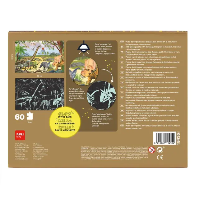 Apli Sestavljanka velika dinozavri 60 kos, "sveti v temi"