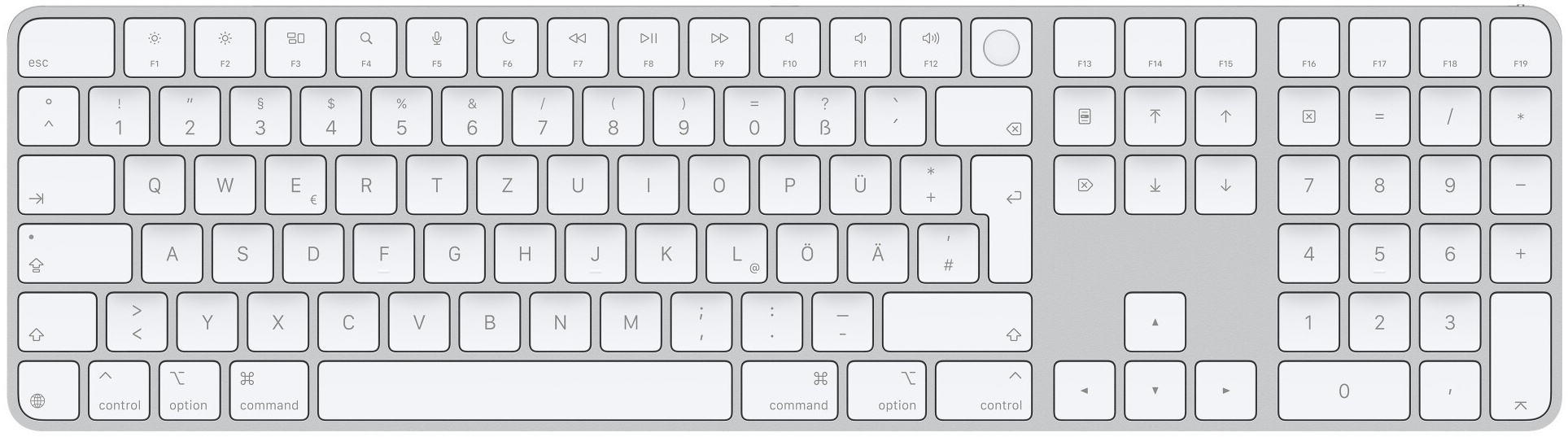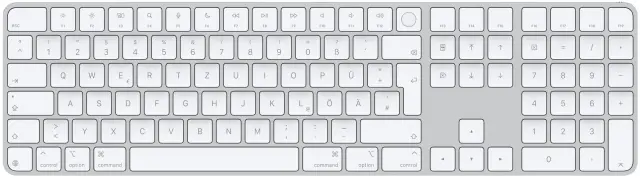 Magic Keyboard s Touch ID-jem in numerično tipkovnico prinaša še večjo funkcionalnost in varnost za Mac modele z Apple Silicon čipom. Z enim dotikom prsta lahko varno odklepate Mac, se prijavite v aplikacije in uporabljate Apple Pay. Numerična tipkovnica je idealna za delo z dokumenti, preglednicami in finančnimi aplikacijami.