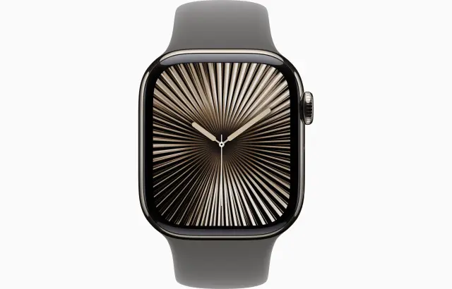 Apple Watch S10 Cellular 42mm Natural titanium case with Stone Grey sport band - S/M