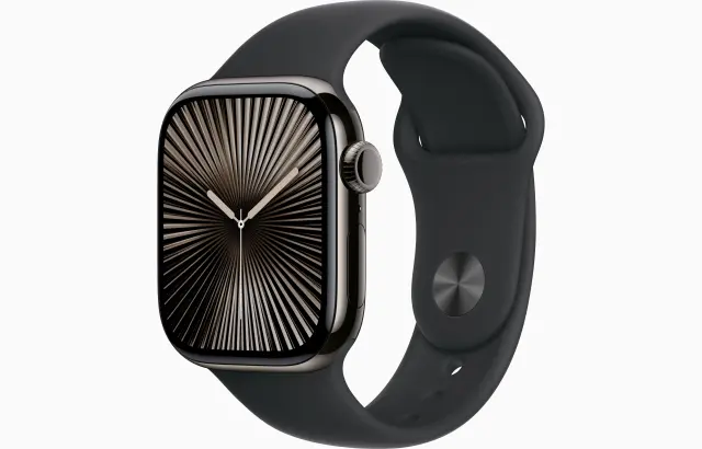 Apple Watch S10 Cellular 46mm Slate titanium case with Black sport band - M/L