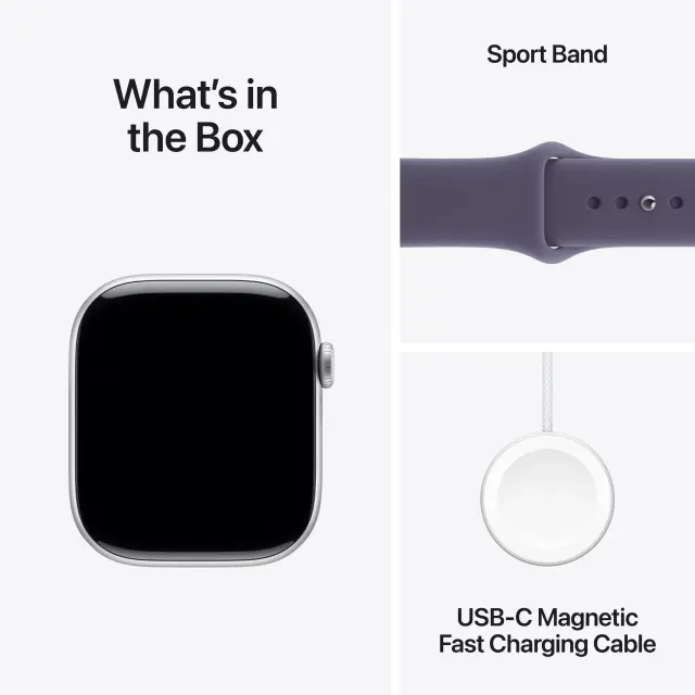 Apple Watch Series 11 GPS 42mm Silver Aluminium Case with Purple Fog Sport Band - S/M