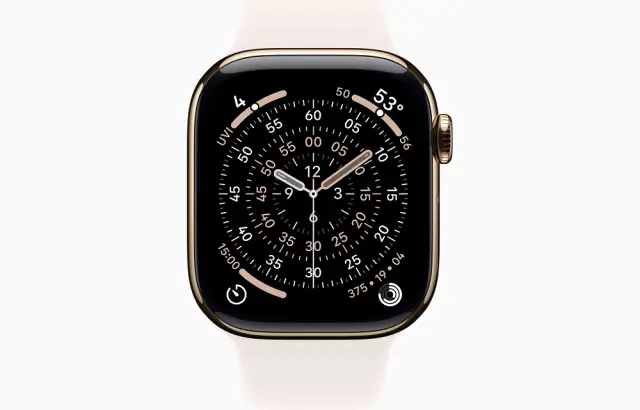 Apple Watch Series 11 GPS + Cellular 46mm Gold Titanium Case with Light Blush Sport Band - S/M
