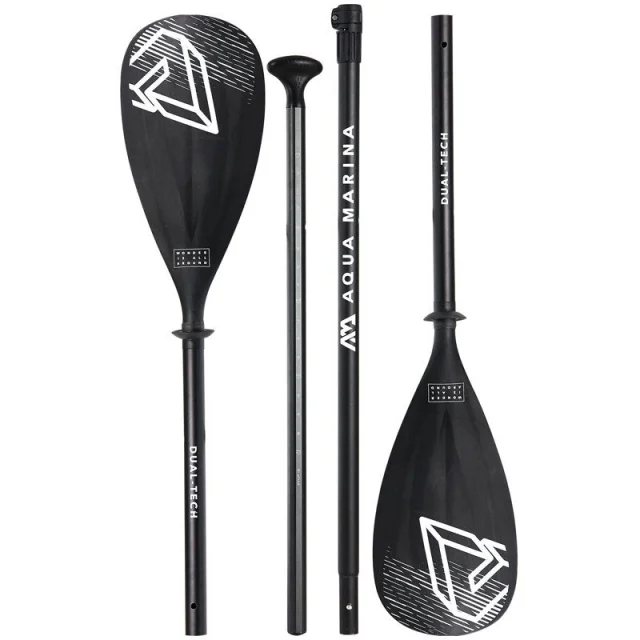 Dual Tech je edinstveno veslo, saj ga enostavno spremenimo iz KAJAK vesla v nastavljivo SUP veslo! Letos prvič je na voljo nastavljivo veslo, ki je popolno za veslače, ki ljubijo dogodivščine in vsestranskost. Ko si želite daljše ture s kajakom, sestavite drog iz dveh delov, na vsak konec pritrdite še lopatko (skupna dolžina kajak vesla 236 cm) in že ste pripravljeni na odkrivanje skritih jezerskih kotičkov! Ko pa si boste želeli supanja, boste eno lopatko odstanili, vstavili ergonomski T-ročaj, nastavili dolžino vesla (175 - 220 cm) in odhiteli proti obzorju. Drog Dual Tech vesla je izdelan iz aluminija, lopatki pa iz polipropilena.