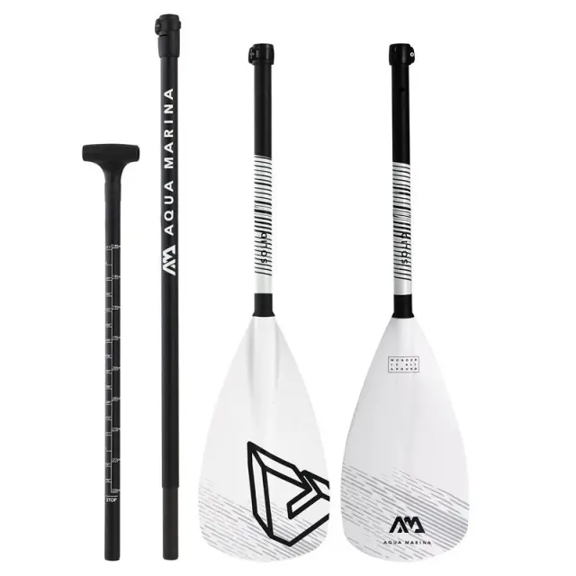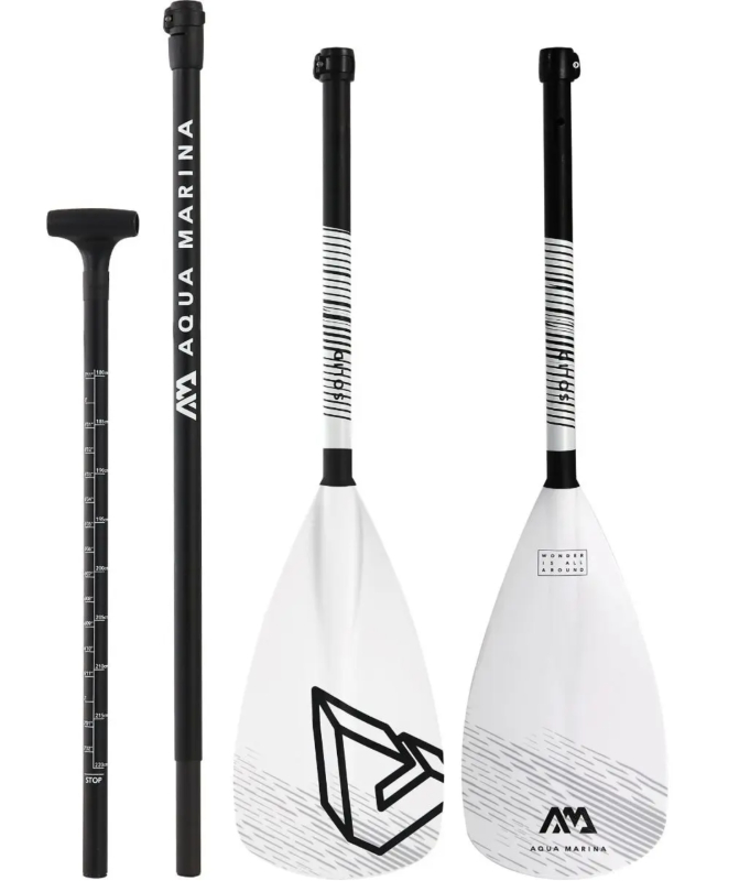 Aqua Marina SOLID je veslo za vse suparske zanesenjake, pa tudi tiste, ki imajo že nekaj vec znanja in izkušenj. Predvsem je pravo veslo za vsakega, ki ceni lahkotnost in trden odriv. Veslo je 3-delno in ga je enostavno nastaviti na poljubno dolžino (od 180 do 220cm), ki bo ustrezala vaši višini. Drog SOLID vesla je izdelan iz fiberglasa, debeline 1,25 mm. Lopatka je prav tako iz fiberglasa, s primesjo polipropilena. Rocaj vesla je T-oblike, da boste imeli trden oprijem in suveren zavesljaj.