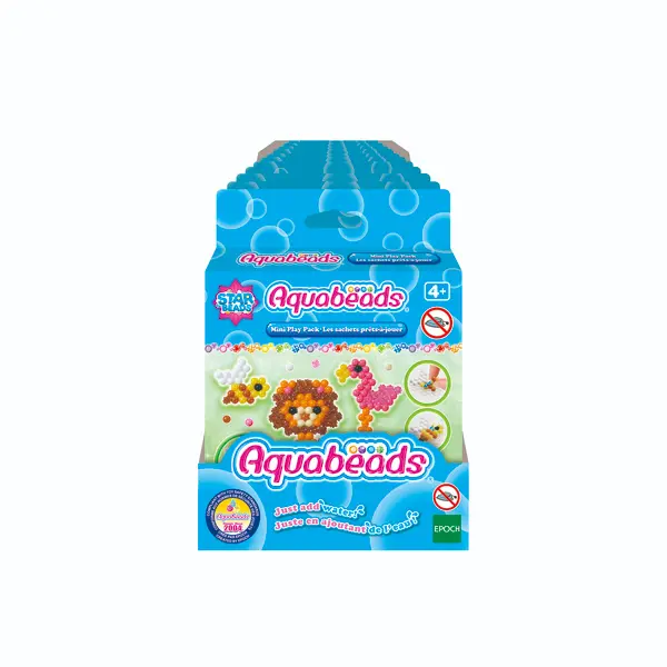 Aquabeads je izvirni izdelek za ustvarjanje bisernih oblik, aktiviran z vodo. Narejen je iz najkakovostnejših materialov in je zabaven ter varen za vso družino. S Mini Bling Ring Pack lahko ustvarite 5 sijočih oblik - metuljček, cvet, kolač, obleko in veverico. Tudi 3 oblike lahko pritrdite na prstan – možnosti so neskončne! Ustvarjanje Aquabeads je enostavno – preprosto ustvarite, poškropite in ostanejo! Set vsebuje 1x Mini Bling Ring Pack (pride z delom za prstan), pršilko in ploščo za postavitev. Oblike biserov so zamenljive, tako da lahko vsak dan izberete nov slog.