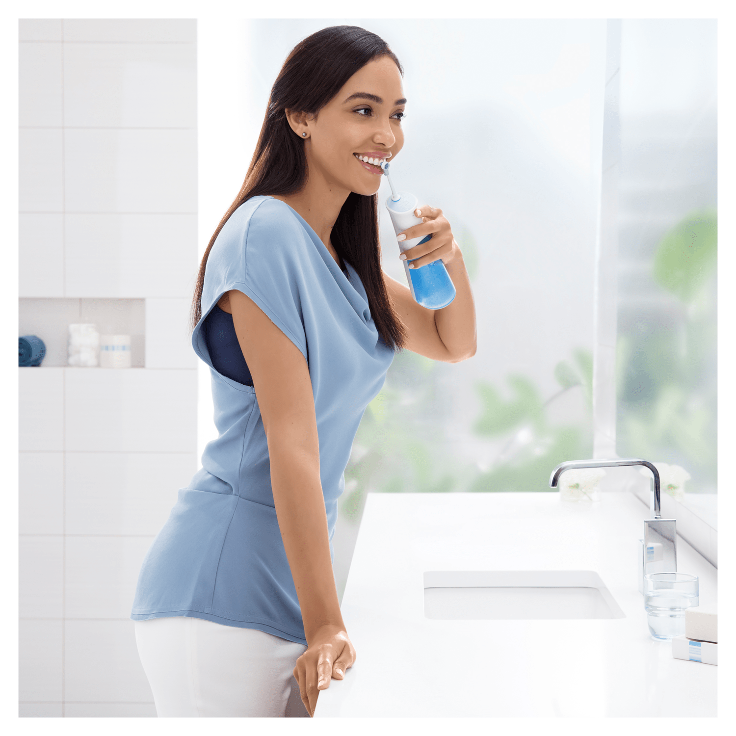 Izboljšajte svojo ustno nego z uporabo ustne prhe Oral-B Aquacare s tehnologijo Oxyjet za poživljujočo nego dlesni. Tehnologija Oxyjet: voda je obogatena s čistilnim delovanjem zračnih mikro-mehurčkov. 2 moči: prilagodite svoje čiščenje z normalno nastavitvijo vodnega tlaka ali z nastavitvijo za občutljive zobe. 2 curka: izberite usmerjen ali rotacijski vodni curek. Brez kablov: enostavno ravnanje brez priključkov. Nega pri zobnih aparatih: nežno odstrani hrano, ki je ujeta med žicami aparata.