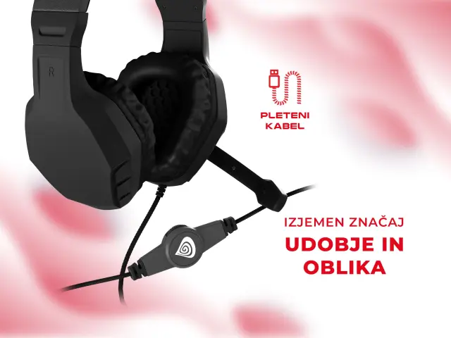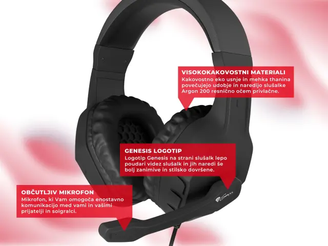 GENESIS Argon 200 STEREO 2.0, LED osvetlitev, pleten kabel, Gaming naglavne slušalke z mikrofonom črne