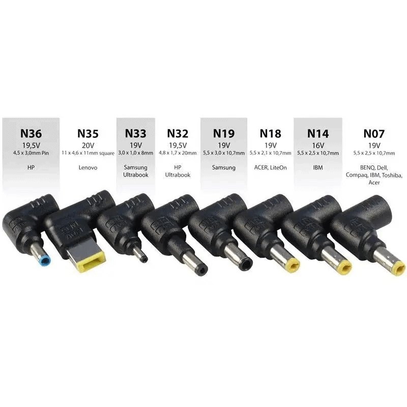 Napajalniku je priloženih 8 različnih nastavkov, ki omogočajo napajanje najbolj pogostih modelov prenosnikov. Napajalnik ima lahko in tanko zasnovo, kar omogoča enostaven prenos. Napajalnik omogoča samodejno spreminjanje napetosti glede na izbran nastavek.