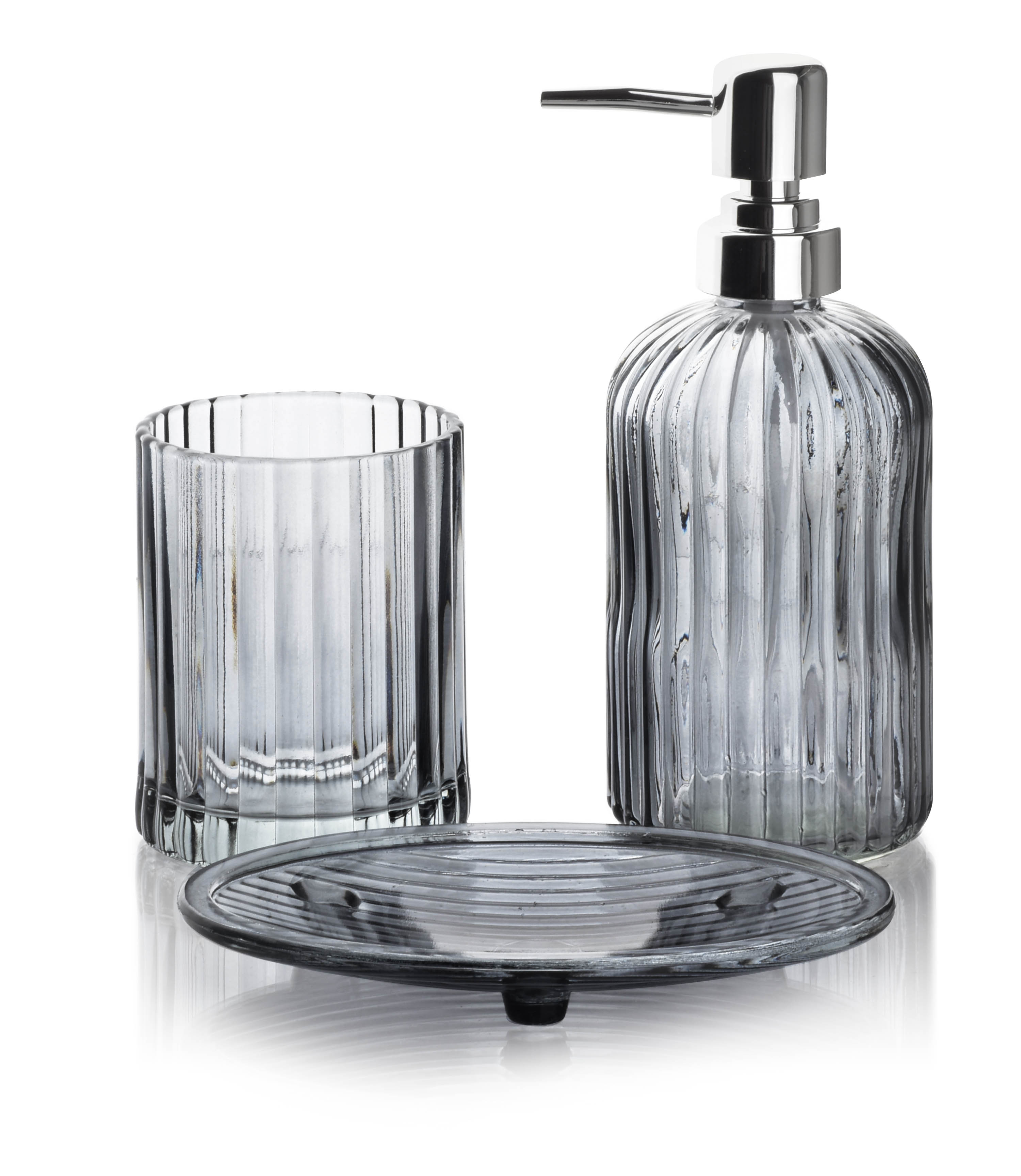 Predstavljamo vam 3-delni kopalniški set iz serije ARI, ki ga je zasnoval ugledni proizvajalec BATHLAB by MONDEX. Ta set je idealna rešitev za vse, ki želijo svoji kopalnici dodati pridih elegance in prefinjenosti. Set vključuje stekleno posodo za milo, stekleno skodelico za zobne ščetke in dozirnik za milo s plastičnim razpršilnikom, kar zagotavlja tako funkcionalnost kot tudi estetski videz.Material steklo, iz katerega je set izdelan, je znan po svoji kvaliteti in trajnosti. Vsak kos je oblikovan s posebnim poudarkom na detajlih, kar omogoča enostavno čiščenje in vzdrževanje. Dozirnik za milo je opremljen s praktično črpalko, ki omogoča enostavno odmerjanje mila, hkrati pa njegova prostornina 400 ml zadostuje za dolgotrajno uporabo. Steklena skodelica za zobne ščetke in posoda za milo dopolnjujeta funkcionalnost seta ter zagotavljata, da bo vaša kopalnica vedno organizirana in urejena.Dodatno, set se odlično prilega v vsako kopalnico, saj je njegov minimalističen in sodoben dizajn zasnovan tako, da se brez težav kombinira z različnimi stili in barvami. Ne glede na to, ali želite osvežiti obstoječo opremo ali opremiti novo kopalnico, bo set ARI s svojo estetsko privlačnostjo in praktičnimi lastnostmi prispeval k izboljšanju vašega bivalnega prostora. Uživajte v vsakodnevni uporabi in preobrazite svojo kopalnico v oazo sprostitve in elegance.
