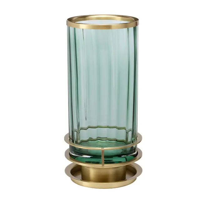 Arno Namizna svetilka iz kovine, starana medenina, zeleno steklo