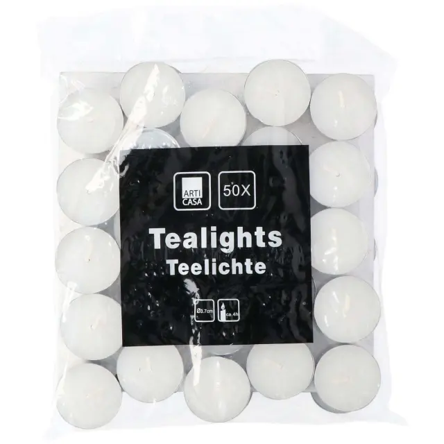 Articasa, Paket 50 Čajnih Svečk iz Voska Čas Gorenja 4h Brez Vonja, Bela