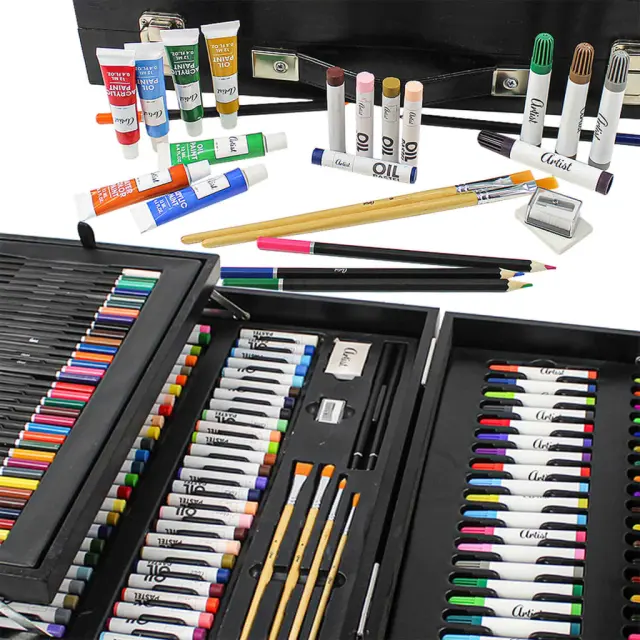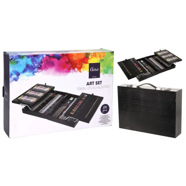 S tem 174-delnim slikarskim kompletom v leseni škatli znamke Artist lahko ustvarite osupljive umetnine. Je nepogrešljiv pripomoček za strastne ustvarjalce risb, umetnike in oblikovalce. Primeren je tako za začetnike kot za izkušene umetnike.