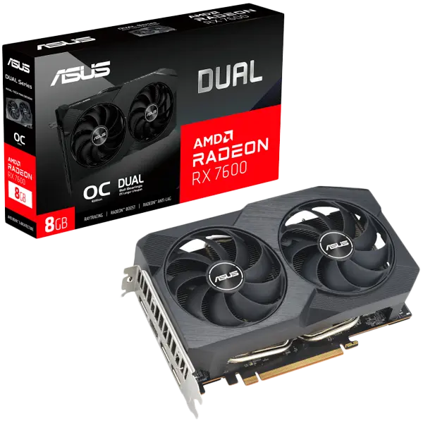 ASUS AMD Radeon RX 7600 V2 OC Edition Dual | 8GB | GDDR6 | PCIe 4.0 | 1x HDMI 2.1 3x DisplayPort 1.4a | Grafična kartica