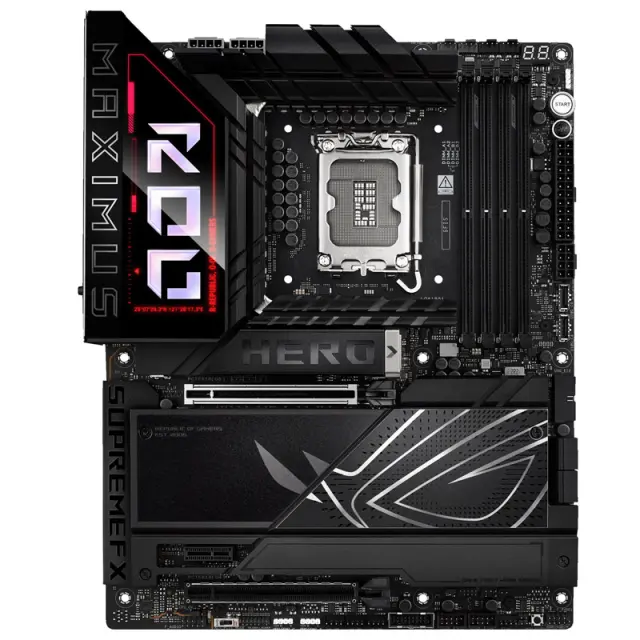 ROG Maximus Z890 Hero sprosti zmogljivosti najnovejših procesorjev Intel Core Ultra (Series 2) z ekskluzivnimi AI tehnologijami, robustno napajalno zasnovo, optimiziranim hlajenjem, podporo za PCIe 5.0, DDR5 pomnilnik in WiFi 7. Poleg tega poskrbi za prepoznaven ROG videz z ostrimi linijami in Polymo II osvetlitvijo okoli logotipa.