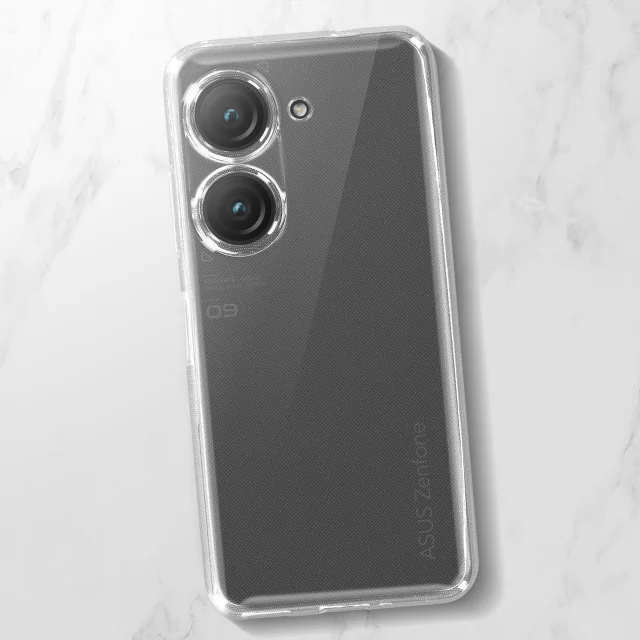 Asus Zenfone 9 360° Protection Pack: tanka mehka torbica, prozorno poševno kaljeno steklo