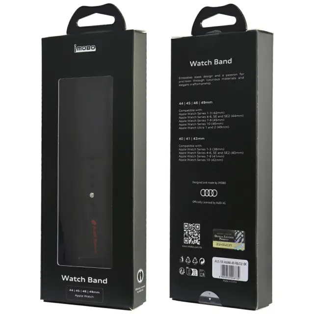 AUDI PAŠEK SPORT RED LOGO ZA APPLE WATCH 44 45 46 49MM ČRN SILIKON
