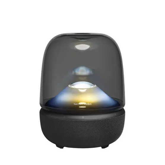 Harman Kardon Aura Studio 5 navdušuje z edinstvenim in prepoznavnim dizajnom. Prozorna kupola ustvarja eleganten in sodoben videz, ki zvočnik spremeni v pravi dekorativni element prostora. Minimalistična črna osnova in mehko razpršena svetloba pod kupolo ustvarita prestižen ambient, ki se popolnoma poda v vsak sodoben dom.