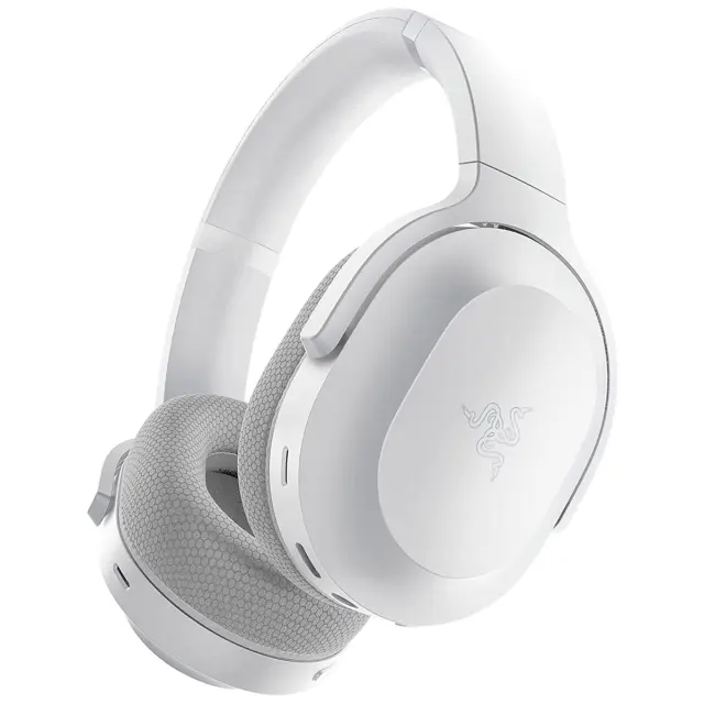 Razer Barracuda-brezžične igralne in mobilne slušalke z več platformami (SmartSwitch Dual Wireless, MIC-mikrofon za odstranjevanje hrupa, Triforce Driver 50 mm, ušesne blazine za pomnilniško peno, 40h baterija, USB-C) Mercury White