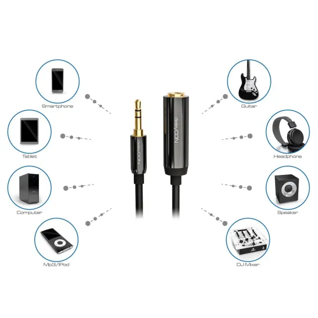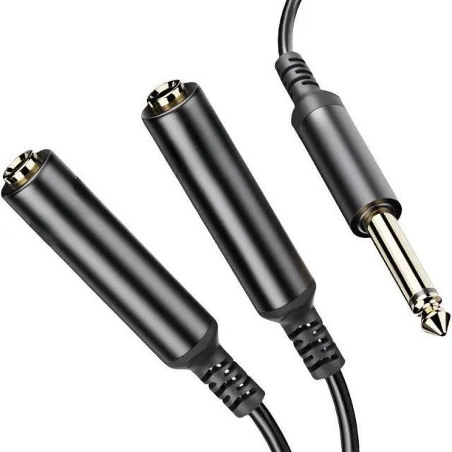 Avdio adapter kabel 3.5mm na 6.35mm ženski, črn, za mikrofone in slušalke 0,3 m