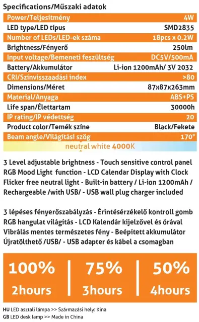 Avide 287804 Namizna svetilka Calendar LED RGB 4W NW 250 lm
