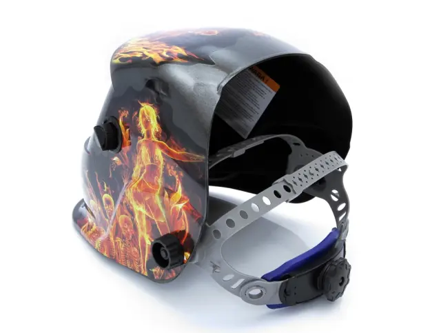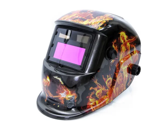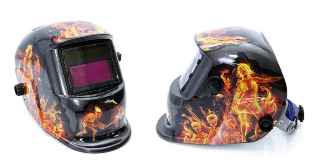 Kakovostna samotemnejoča čelada. Maska je primerna za varjenje s številnimi metodami obločnega varjenja: MIG, TIG, MAG, MMA. Uporabnika ščiti pred škodljivim sevanjem, ki nastane med varjenjem, pa tudi pred iskrami in brizganjem. Poseben senzor v filtrirni kaseti samodejno prepozna začetek varilnega postopka in aktivira funkcijo samotemnjenja. Po končanem delu se filter samodejno vrne v stanje razsvetljave. Filter napajajo notranje baterije, ki se samodejno polnijo prek sončnih celic. Maska je opremljena z večstopenjskim prilagajanjem, ki omogoča prilagoditev velikosti glave uporabnika. Zaradi majhne teže je zelo udoben za uporabo. Maska je opremljena s tremi stikali: nastavitev stopnje zatemnitve, prilagoditev občutljivosti fotosenzorjev, stikalo za izbiro načina varjenja Izdelana iz trpežnega PA / PP polimernega materiala Obseg sence: 9-13 DIN Odzivni čas svetlobe do teme: 5 / 30000s Reakcijski čas od temne do svetlobe: 0,1 s ~ 0,8 s Vidno polje: 93 x 43 mm Zaščita obraza po standardu: EN175 Zaščita za oči v skladu s standardi: EN379, ANSI Z87.1-2010 Teža: približno 450 g 12 mesecev garancije