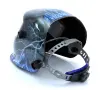 Kakovostna samotemnejoča čelada. Maska je primerna za varjenje s številnimi metodami obločnega varjenja: MIG, TIG, MAG, MMA. Uporabnika ščiti pred škodljivim sevanjem, ki nastane med varjenjem, pa tudi pred iskrami in brizganjem. Poseben senzor v filtrirni kaseti samodejno prepozna začetek varilnega postopka in aktivira funkcijo samotemnjenja. Po končanem delu se filter samodejno vrne v stanje razsvetljave. Filter napajajo notranje baterije, ki se samodejno polnijo prek sončnih celic. Maska je opremljena z večstopenjskim prilagajanjem, ki omogoča prilagoditev velikosti glave uporabnika. Zaradi majhne teže je zelo udoben za uporabo. Maska je opremljena s tremi stikali: nastavitev stopnje zatemnitve, prilagoditev občutljivosti fotosenzorjev, stikalo za izbiro načina varjenja Izdelana iz trpežnega PA / PP polimernega materiala Obseg sence: 9-13 DIN Odzivni čas svetlobe do teme: 5 / 30000s Reakcijski čas od temne do svetlobe: 0,1 s ~ 0,8 s Vidno polje: 93 x 43 mm Zaščita obraza po standardu: EN175 Zaščita za oči v skladu s standardi: EN379, ANSI Z87.1-2010 Teža: približno 450 g 12 mesecev garancije