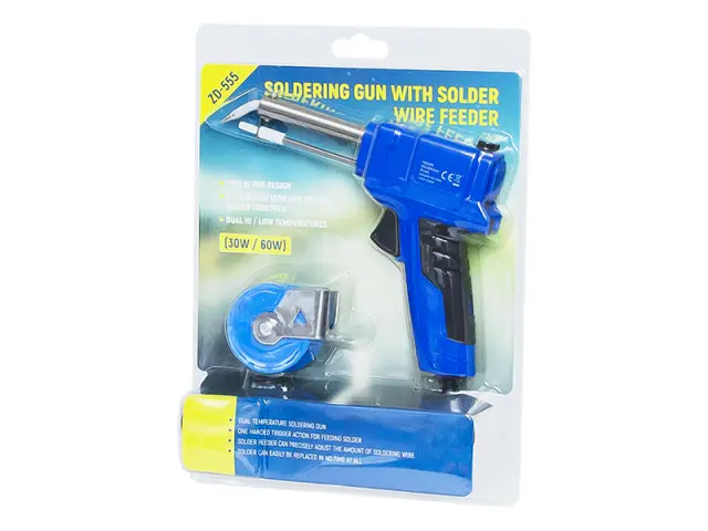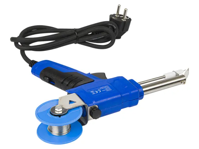 Pištolni spajkalnik s podajalnikom kositra za spajkanje majhnih elektronskih komponent. Podajalnik pločevine omogoča natančno doziranje veziva. Namenjen za hobi delo in profesionalno uporabo.