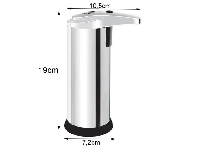 Izdelana iz visokokakovostnih materialov Prostornina: 200 ml Funkcija brezkontaktnega doziranja tekočine Higiensko Na baterije: 4 x AAA (niso priložene) Priročnost uporabe Senzor gibanja Univerzalni Dimenzije: 10,5 cm x 19 cm x 7,2 cm Srebrne barve