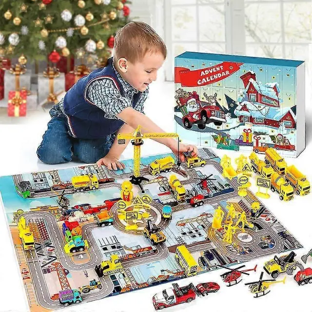 Avtomobili Adventni koledar za otroke Fantje 2023 Božič, 24 Pull Back Vehicles Igralni kompleti z žerjavom Helikopter Traktor Construction Tru