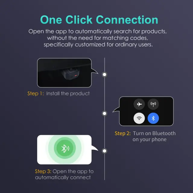 Vsestranska združljivost: Diagnostično orodje je združljivo z vsemi vozili, ki podpirajo protokol OBDII, kar pomeni, da ga lahko uporabljate na večini sodobnih avtomobilov. Podpira devet različnih protokolov, kar zagotavlja široko združljivost. Poleg tega se poveže s pametnimi telefoni preko Bluetooth 5.4, kar omogoča enostavno uporabo in prenos podatkov. Predstavljajte si, da imate eno orodje, ki deluje z vsemi vašimi vozili.