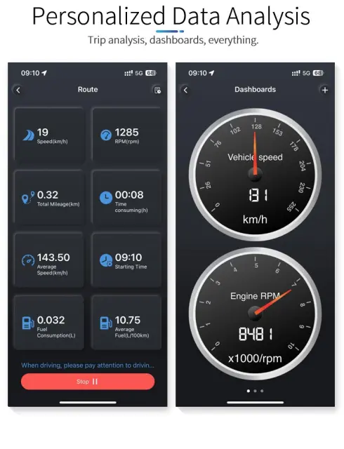 Podatki v realnem času: Spremljajte ključne podatke o delovanju vašega vozila v realnem času. Oglejte si hitrost motorja, temperaturo hladilne tekočine, obremenitev motorja in druge pomembne parametre. Ti podatki vam omogočajo, da spremljate delovanje vašega vozila in prepoznate morebitne težave, preden se razvijejo v resnejše težave.