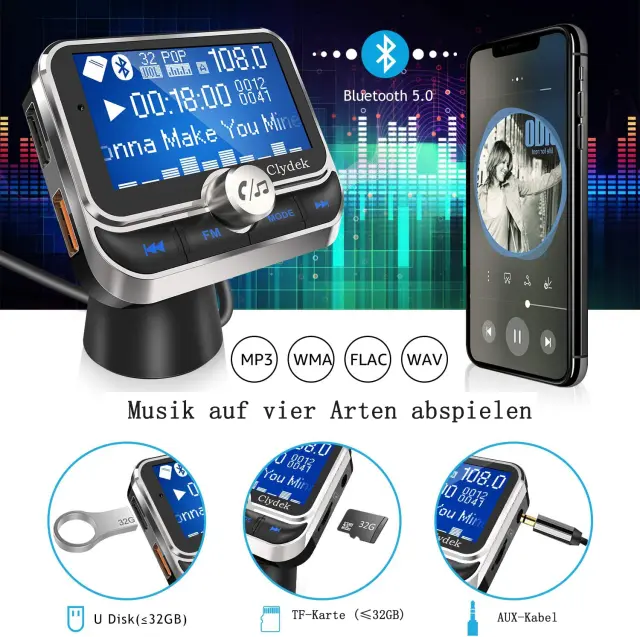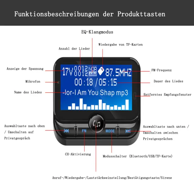 Jasna kakovost zvoka: Bluetooth FM oddajnik za avto uporablja najnovejšo tehnologijo povezave Bluetooth in zmanjševanja šuma.