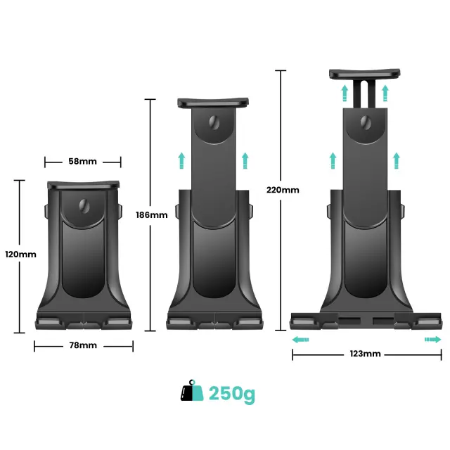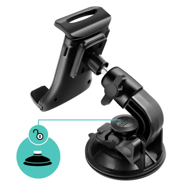 Združljiv s pametnimi telefoni in tabličnimi računalniki velikosti od 7 do 10 palcev za vsestransko uporabo v avtomobilu, kar je idealno za navigacijo ali zabavo.. Praktična dvojna namestitev: hitra namestitev na vetrobransko steklo ali armaturno ploščo, odvisno od konfiguracije vozila. 360° vrtljiva glava za natančno nastavitev kota gledanja v pokončnem ali ležečem položaju. Zmogljiva sesalna blazina za zanesljiv oprijem in dobro stabilnost, tudi na neravnih cestah.