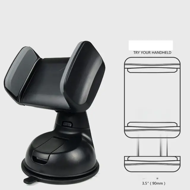 Avtomobilski nosilec s sesalno skodelico, črn, za telefone 3.5-7.2"