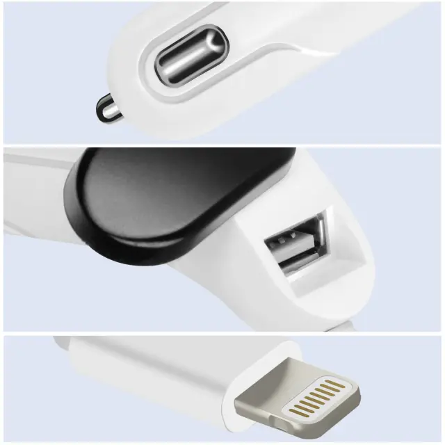 Ta polnilnik za cigaretni vžigalnik 1A z vticnico Lightning vam omogoca polnjenje vašega mobilnega telefona med potovanjem z avtomobilom. Izkoristite njegove funkcije brez skrbi za življenjsko dobo baterije. Združljivo z mobilnimi napravami, opremljenimi z vrati Apple Lightning.
